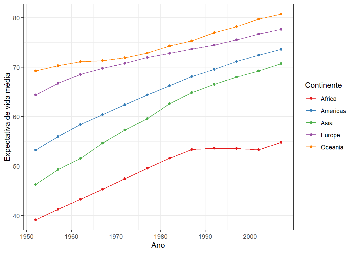 Para carregar a base de dados gapminder, você precisa carregar o pacote gapminder. Com o pacote gapminder carregado, a base de dados gapminder estará disponível para uso em seu ambiente R: