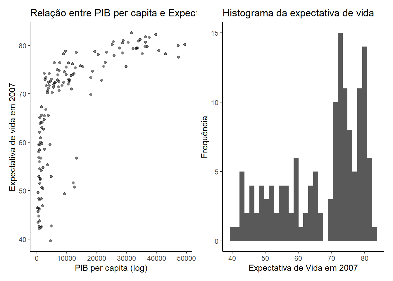 title = "Relação entre PIB per capita e Expectativa de Vida") +